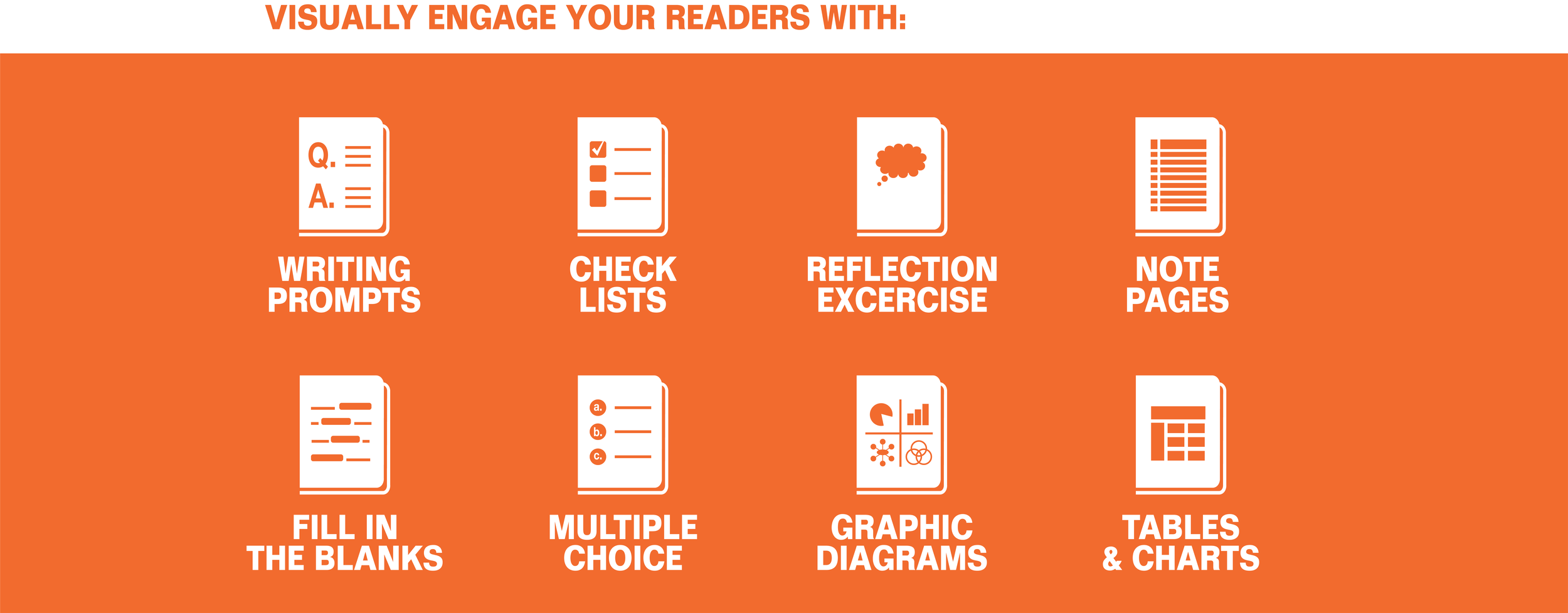 A workbook is an interactive tool for learning. It not only holds your valuable content but also includes graphic design elements that allow your readers to achieve transformational results while working through your content.